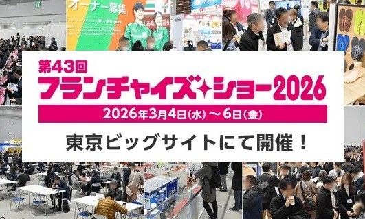 東京ビッグサイトで開催する展示会「フランチャイズ・ショー 2026」に出展いたします(小間番号FC1045)。ご来場にあたっては事前登録が必要になりますのでお気軽にお問い合わせください。弊社のビジネスに少しでもご興味がございましたらぜひ会場へお越し頂ければと思います。