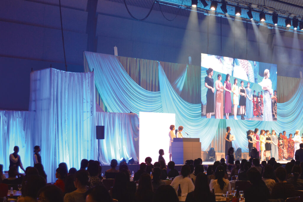 2025年12月11日に毎年開催している第25回全国大会が開催されました。毎年全国の直営店や加盟オーナー様・スタッフ様など1000人近くの方にご参加頂いております。7月~9月に行われる全国コンテストにて優秀な成績を収められたオーナーやスタッフが壇上に上がり、表彰式を行っております。ミスエステの加盟オーナー様もオーナー賞を受賞し、あふれる思いをスピーチして頂きました。